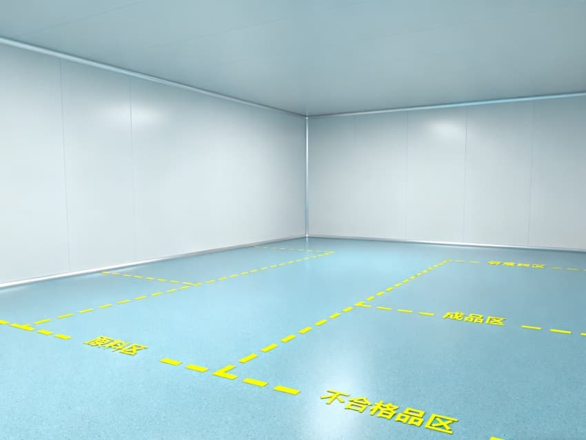 車間整體遵循醫藥級潔凈設計標準,地面采用淺藍色抗菌防滑環氧地坪,通過無縫一體化施工工藝,徹底消除藥渣殘留隱患與衛生死角,其卓越的耐腐蝕性與易清潔特性,能夠從容應對中藥清洗、切制等高頻清潔作業;四周白色防塵抗菌墻面經過特殊工藝處理,具備優異的光線漫反射性能,搭配頂部科學布局的柔和照明系統,既保證操作人員能夠清晰觀察藥材炮制過程中的性狀變化,又為生產環境構筑起一道潔凈無菌的安全屏障。