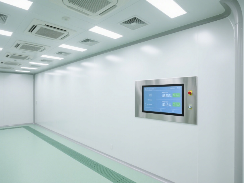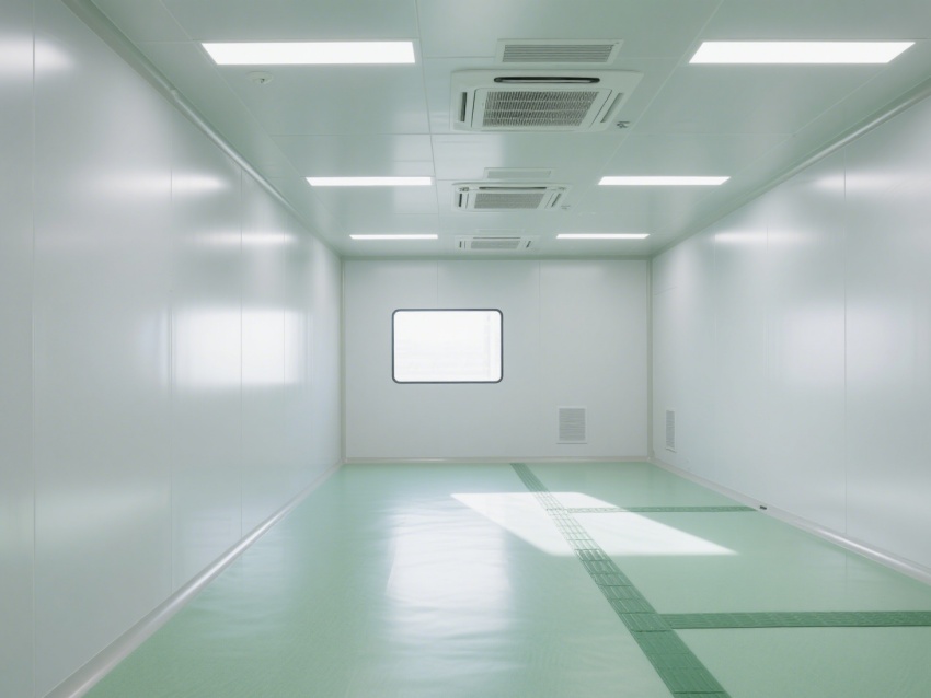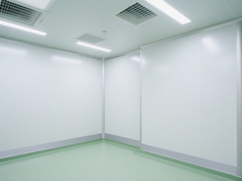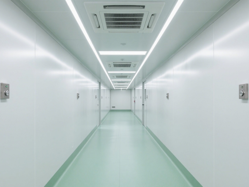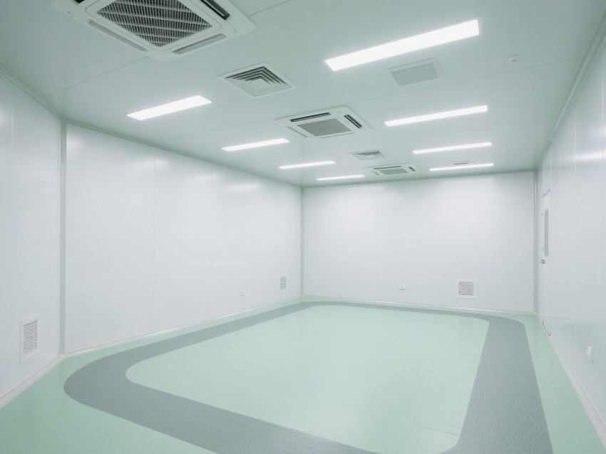實(shí)驗(yàn)室內(nèi)部采用了白色和淺綠色為主的配色方案,營(yíng)造出一種干凈、整潔的視覺(jué)感受。墻面、地面和天花板均采用無(wú)縫設(shè)計(jì),便于清潔和消毒,防止微生物和灰塵的積聚。照明系統(tǒng)明亮且均勻,提供了良好的工作環(huán)境。