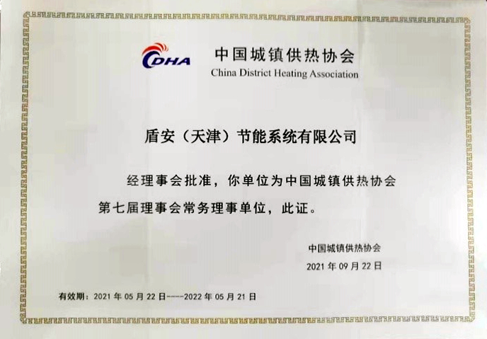 水發(fā)能源盾安(天津)節(jié)能系統(tǒng)有限公司當選中國城鎮(zhèn)供熱協(xié)會第七屆理事會常務理事單位